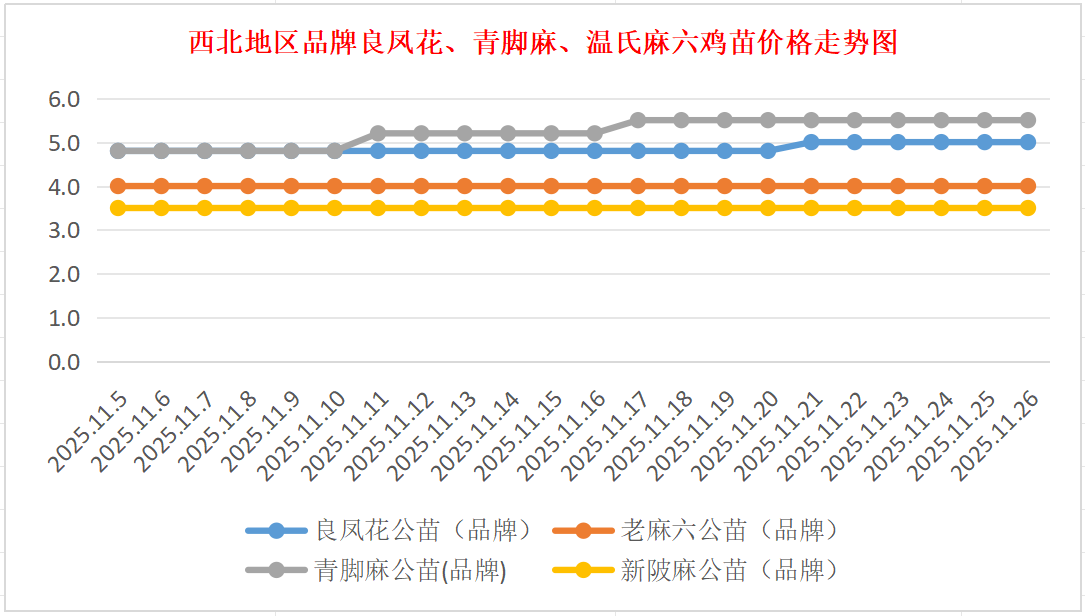 西北地区麻鸡苗价格走势图(来源:鸡病专业网)