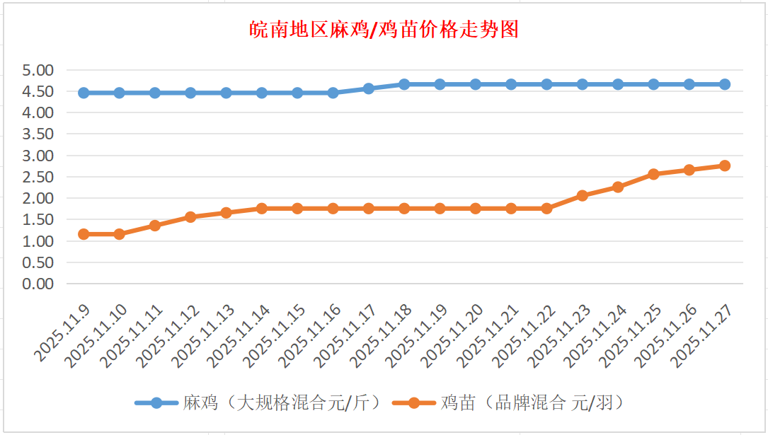 鸡病专业网独家信息:2025年11月27日皖南地区817-麻鸡行情最新走势