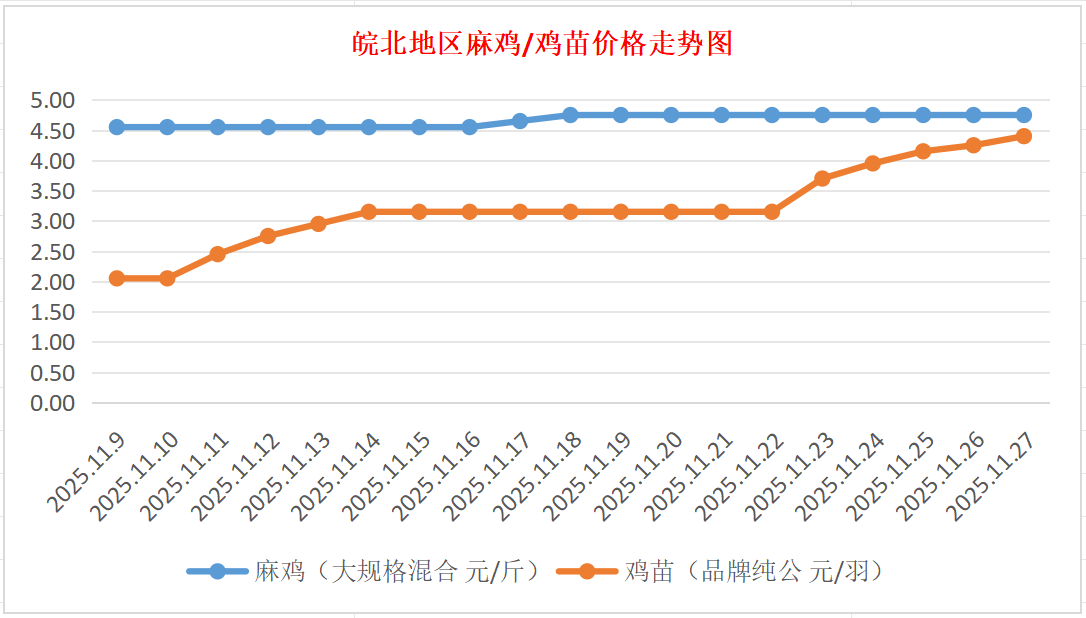 鸡病专业网独家信息:2025年11月27日皖北地区817-麻鸡行情最新走势