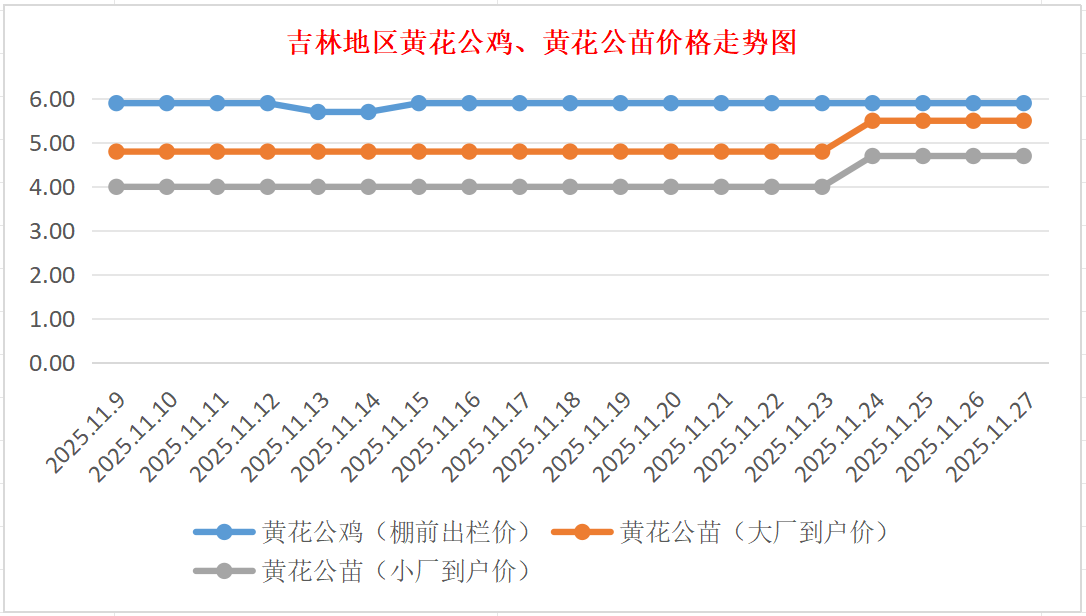 11月27日吉林黄花公鸡、鸡苗价格行情