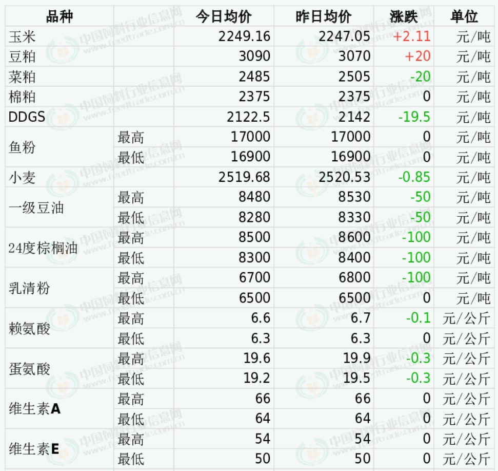2025年11月26日国内饲料原料行情汇总