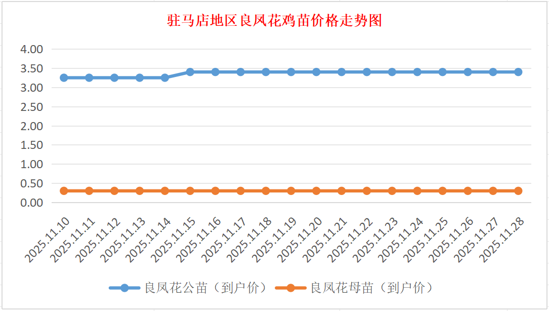 11月28日驻马店地区良凤花、岭南黄鸡苗价格行情