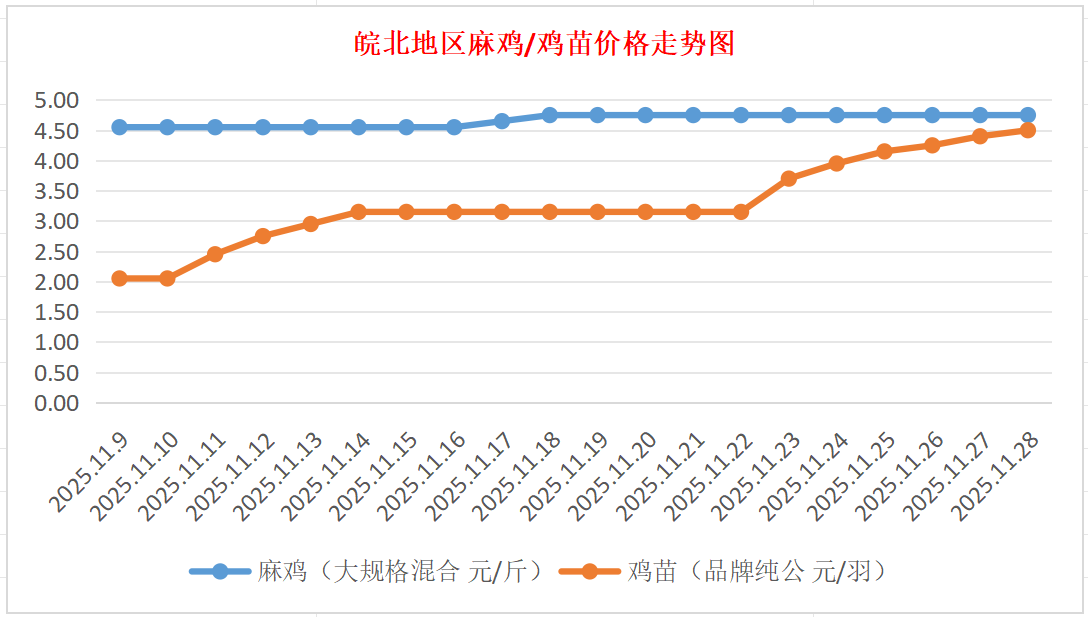鸡病专业网独家信息:2025年11月28日皖北地区817-麻鸡行情最新走势