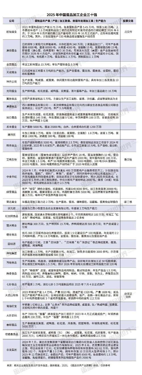重磅!2025年中国蛋品加工企业三十强出炉
