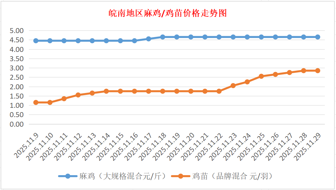 鸡病专业网独家信息:2025年11月29日皖南地区817-麻鸡行情最新走势