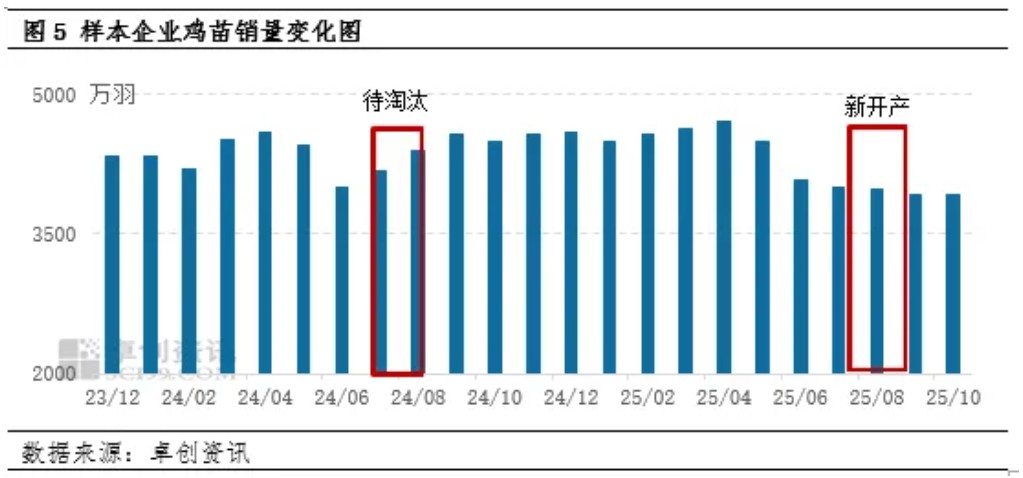 根据前期鸡苗销量估算,12月份进入产蛋期的蛋鸡应为8月补栏的鸡苗,此阶段鸡苗销量环比减少0.43%,而12月出栏的老母鸡是2024年7-8月份补栏的鸡苗,此时间段鸡苗销量环比增多,因此,12月份待出栏老母鸡环比增加,出栏老鸡多于新开产蛋鸡的现象仍将继续,产蛋鸡存栏量或延续减少趋势,鸡蛋产量或减少,供应压力缓解。需求方面,12月份多数时间仍处消费淡季,少数时间或有商超、电商平台的促销活动,且2026年春节时间靠后,春节需求对12月鸡蛋消费的拉动作用不明显,因此预计12月份鸡蛋需求或长期暂处低位,月底或微幅增多。综上所述,12月份全国鸡蛋供应量或高位减少,供应压力略有缓解,需求或长期维持低位,月底短暂增加,鸡蛋价格或在中上旬维持低位,月底有小幅上涨可能,月内价格或在2.80-3.10元/斤的范围内调整。