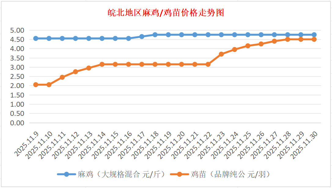 鸡病专业网独家信息:2025年11月30日皖北地区817-麻鸡行情最新走势