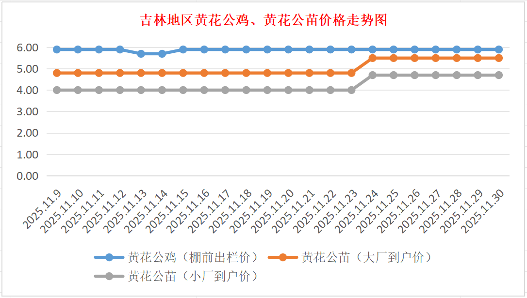 11月30日吉林黄花公鸡、鸡苗价格行情