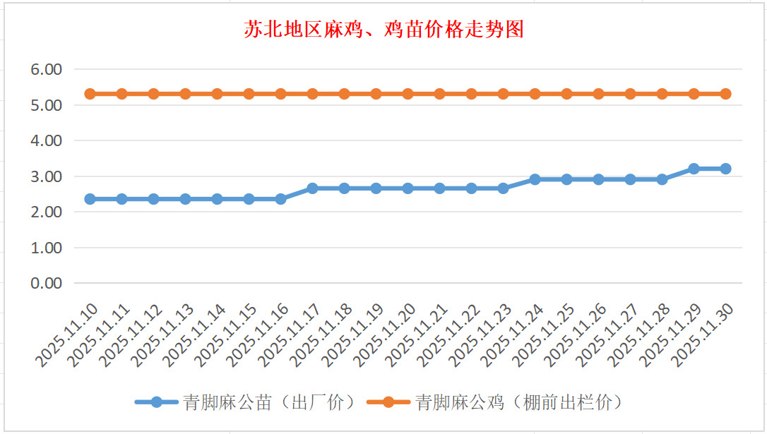 苏北地区麻鸡、鸡苗价格走势图(图源:鸡病专业网)