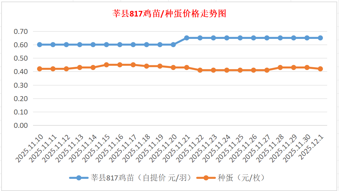 种蛋:昨日种蛋0.41-0.42元/枚。