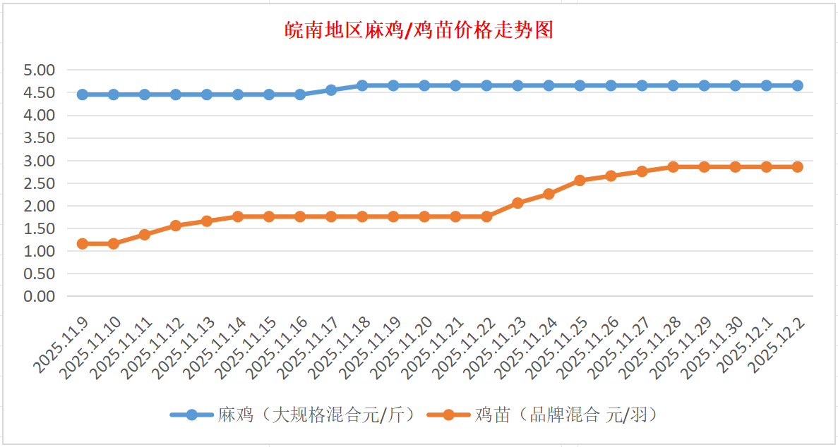 鸡病专业网独家信息:2025年12月2日皖南地区817-麻鸡行情最新走势