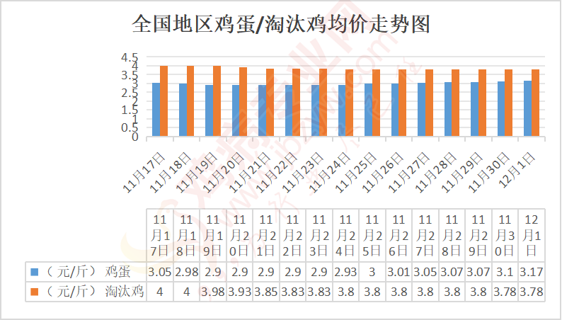 12月1日我国部分地区鸡蛋、淘汰鸡价格汇总
