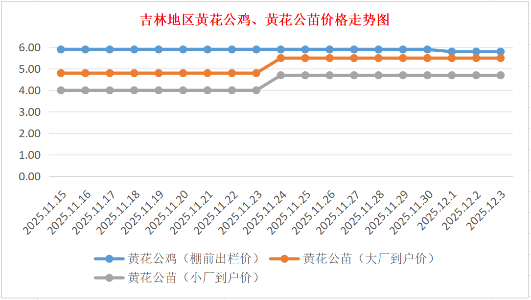 12月3日吉林黄花公鸡、鸡苗价格行情