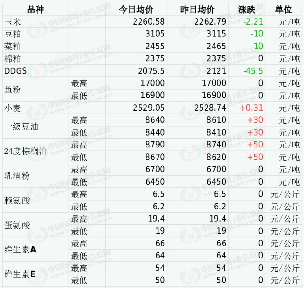 2025年12月2日国内饲料原料行情汇总