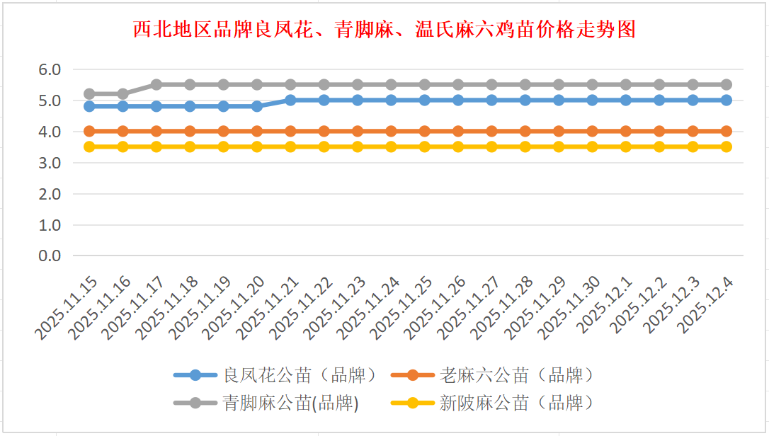西北地区麻鸡苗价格走势图(来源:鸡病专业网)