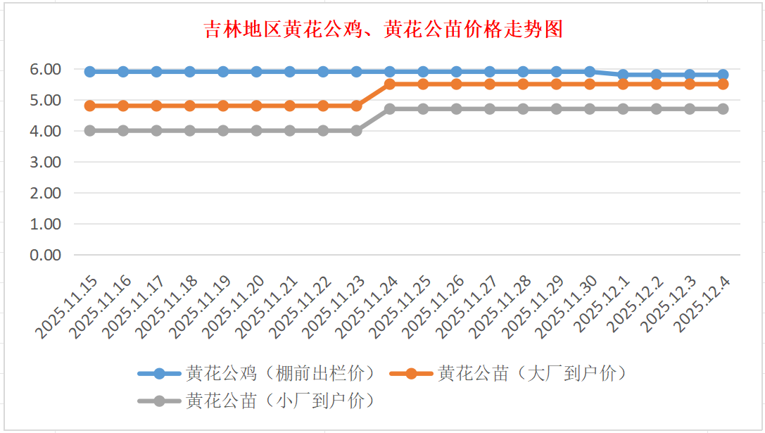 12月4日吉林黄花公鸡、鸡苗价格行情