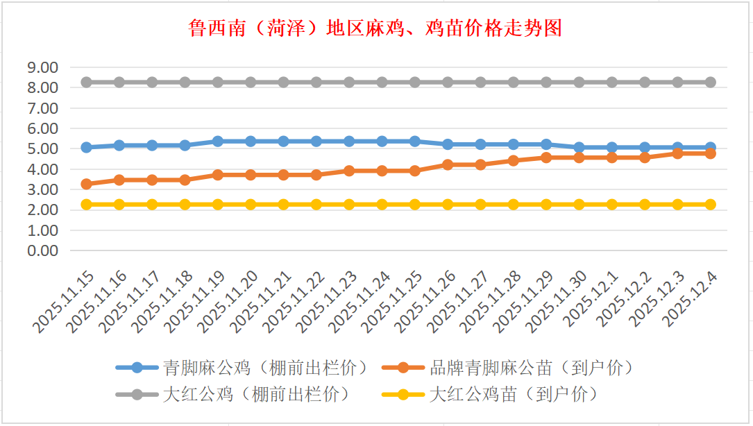 12月4日鲁西南(菏泽)地区麻鸡、鸡苗价格行情
