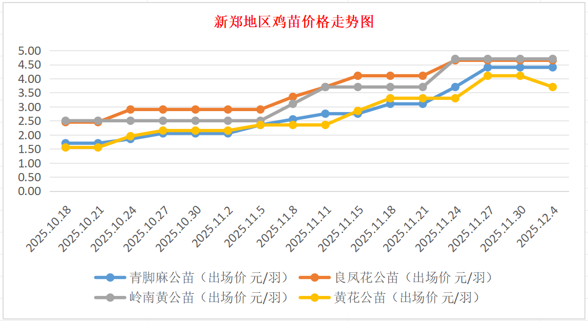 新郑地区鸡苗价格走势图(来源:鸡病专业网)