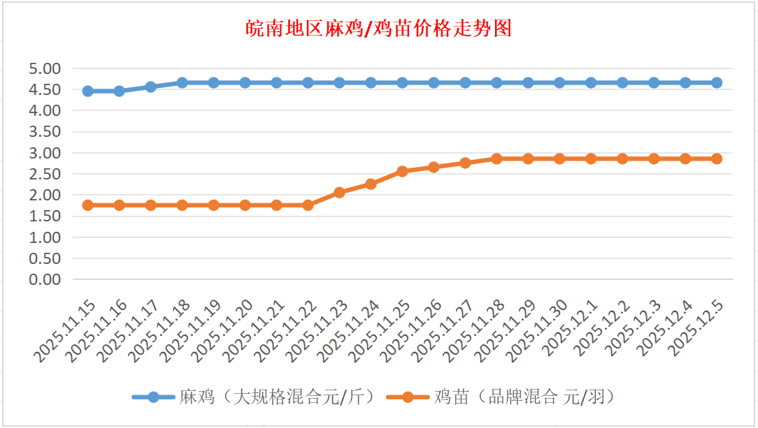 鸡病专业网独家信息:2025年12月5日皖南地区817-麻鸡行情最新走势