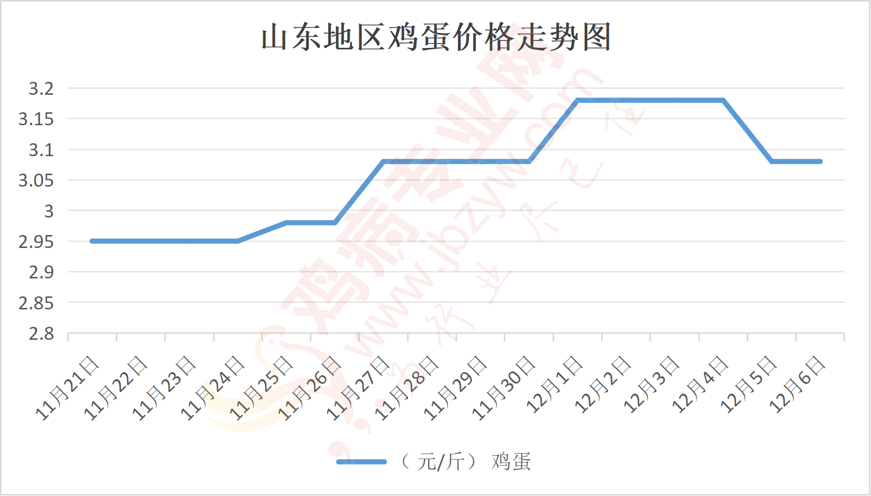 鸡病专业网消息:12月6日,山东地区莱阳鸡蛋3.1元/斤,稳;青岛鸡蛋3.1元/斤,稳;诸城鸡蛋3.1元/斤,稳;安丘鸡蛋3.05元/斤,稳;昌乐鸡蛋3.05元/斤,稳;寿光鸡蛋3.05元/斤,稳;昌邑鸡蛋3.05元/斤,稳;高密鸡蛋3.1元/斤,稳;青州鸡蛋3.05元/斤,稳;临朐鸡蛋3.05元/斤,稳;莱州鸡蛋3.1元/斤,稳;威海鸡蛋3.1元/斤,稳;临沭鸡蛋3.05元/斤,稳;沂水鸡蛋3.05元/斤,稳;沂南鸡蛋3.05元/斤,稳;莒南鸡蛋3.05元/斤,稳;兰陵县鸡蛋3.05元/斤,稳;日照鸡蛋3.05元/斤,稳;莒县鸡蛋3.05元/斤,稳;日照辛萁商贸鸡蛋3.05元/斤,稳;泗水鸡蛋价格90元/斤,稳;济宁、汶上鸡蛋价格90元/斤,稳;梁山、东平红蛋价格90元/斤,稳;枣庄滕州地区鸡蛋混码主流到户91元/30斤,稳;泰安地区新泰鸡蛋价格90元/斤,稳;菏泽地区曹县主流到户90元/斤,稳;成武鸡蛋价格90元/斤,稳;单县到户90元/斤,稳;聊城莘县90元/斤,稳。