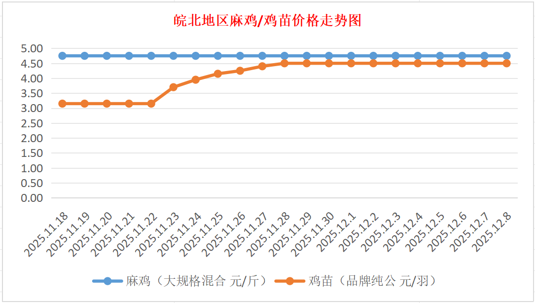 鸡病专业网独家信息:2025年12月8日皖北地区817-麻鸡行情最新走势