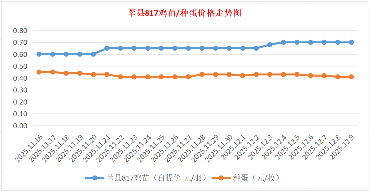 817鸡苗(混合):报价自提0.70元/羽。(稳)