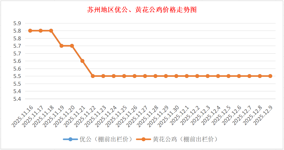苏州地区优公、黄花公鸡价格走势图(来源:鸡病专业网)