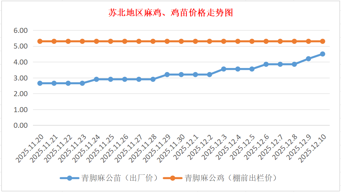 苏北地区麻鸡、鸡苗价格走势图(图源:鸡病专业网)