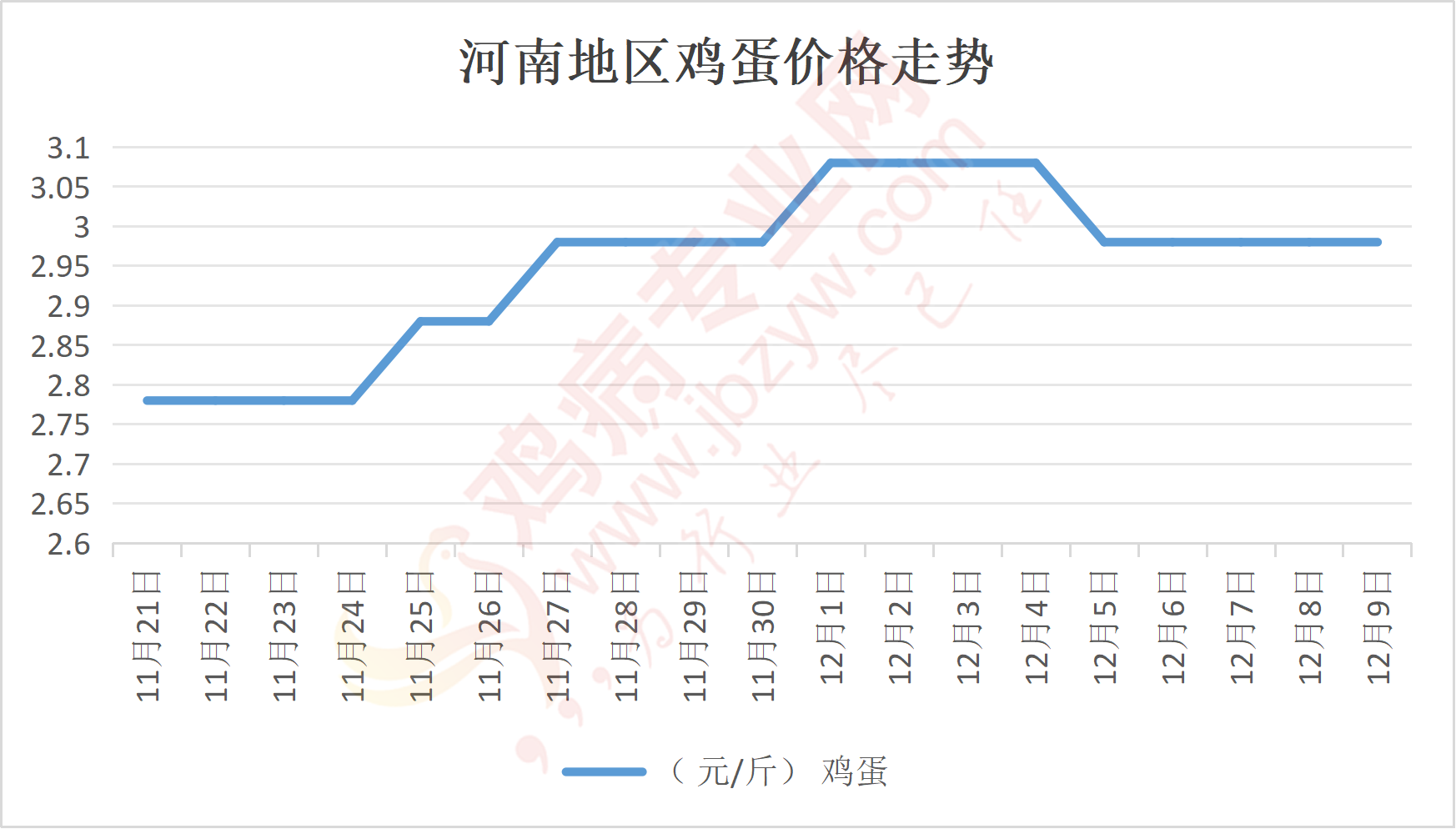 鸡病专业网消息:12月9日,河南郑州鸡蛋3元/斤,稳;新密鸡蛋3元/斤,稳;荥阳鸡蛋3元/斤,稳;中牟鸡蛋3元/斤,稳;周口鸡蛋2.95元/斤,稳;商丘鸡蛋90元/30斤,稳;鹤壁鸡蛋2.95元/斤,稳;汝州鸡蛋2.95元/斤,稳;开封鸡蛋90元/30斤,稳;漯河鸡蛋2.95元/斤,稳;漯河临颍鸡蛋2.95元/斤,稳;许昌鸡蛋3元/斤,稳;南阳鸡蛋2.95元/斤,稳;南阳邓州鸡蛋2.95元/斤,稳;新乡鸡蛋2.95元/斤,稳;安阳鸡蛋2.95元/斤,稳;新郑鸡蛋3元/斤,稳;登封鸡蛋3元/斤,稳;平顶山鸡蛋3元/斤,稳;驻马店鸡蛋3元/斤,稳;三门峡鸡蛋3元/斤,稳;焦作鸡蛋2.95元/斤,稳;信阳鸡蛋2.95元/斤,稳;濮阳鸡蛋2.95元/斤,稳。