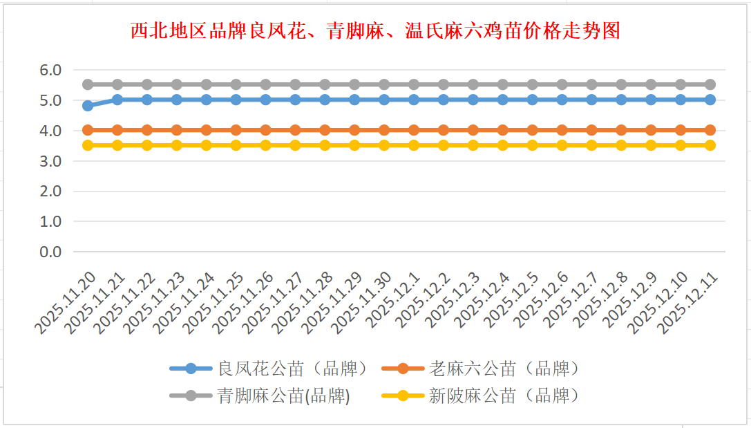 品牌新陂麻:价格稳定,到户价公苗4.50元/羽,稳。