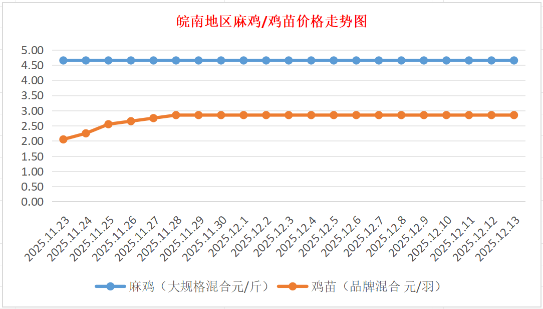 鸡病专业网独家信息:2025年12月13日皖南地区817-麻鸡行情最新走势