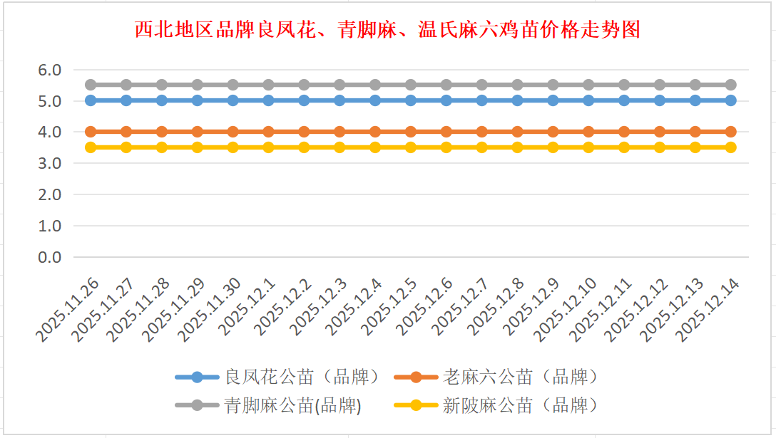 品牌新陂麻:价格稳定,到户价公苗4.50元/羽,稳。
