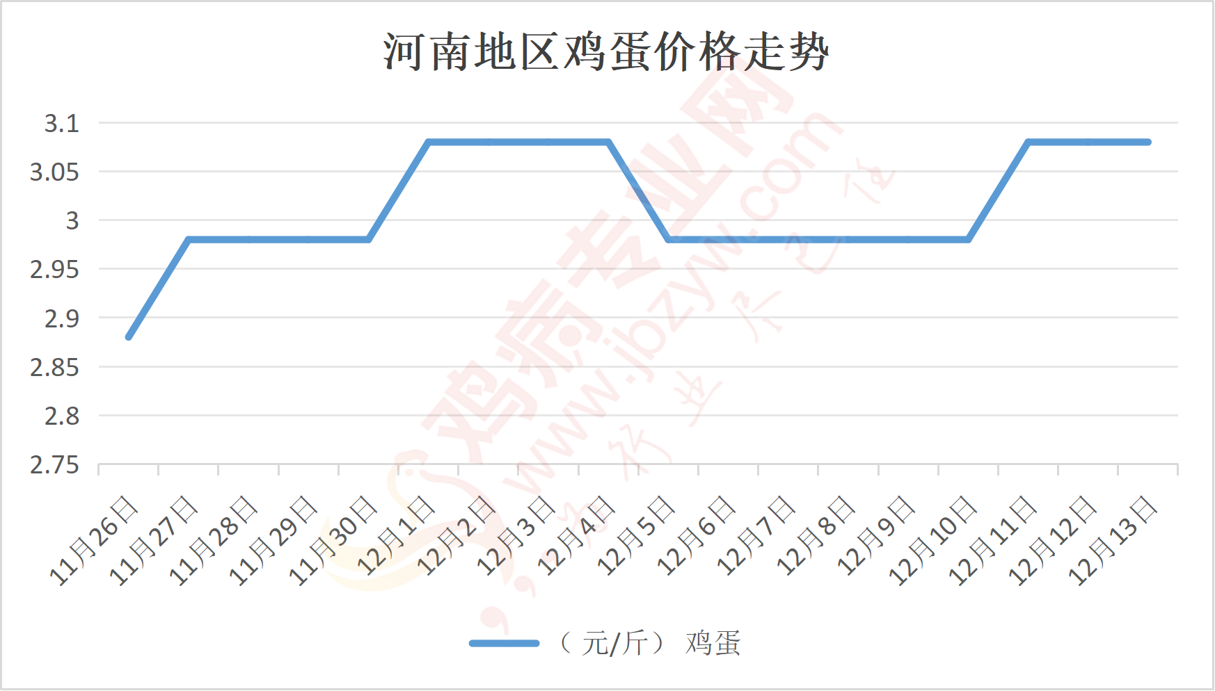 鸡病专业网消息:12月13日,河南郑州鸡蛋3.1元/斤,稳;新密鸡蛋3.1元/斤,稳;荥阳鸡蛋3.1元/斤,稳;中牟鸡蛋3.1元/斤,稳;周口鸡蛋3.05元/斤,稳;商丘鸡蛋93元/30斤,稳;鹤壁鸡蛋3.05元/斤,稳;汝州鸡蛋3.05元/斤,稳;开封鸡蛋93元/30斤,稳;漯河鸡蛋3.05元/斤,稳;漯河临颍鸡蛋3.05元/斤,稳;许昌鸡蛋3.1元/斤,稳;南阳鸡蛋3.05元/斤,稳;南阳邓州鸡蛋3.05元/斤,稳;新乡鸡蛋3.05元/斤,稳;安阳鸡蛋3.05元/斤,稳;新郑鸡蛋3.1元/斤,稳;登封鸡蛋3.1元/斤,稳;平顶山鸡蛋3.1元/斤,稳;驻马店鸡蛋3.1元/斤,稳;三门峡鸡蛋3.1元/斤,稳;焦作鸡蛋3.05元/斤,稳;信阳鸡蛋3.05元/斤,稳;濮阳鸡蛋3.05元/斤,稳。