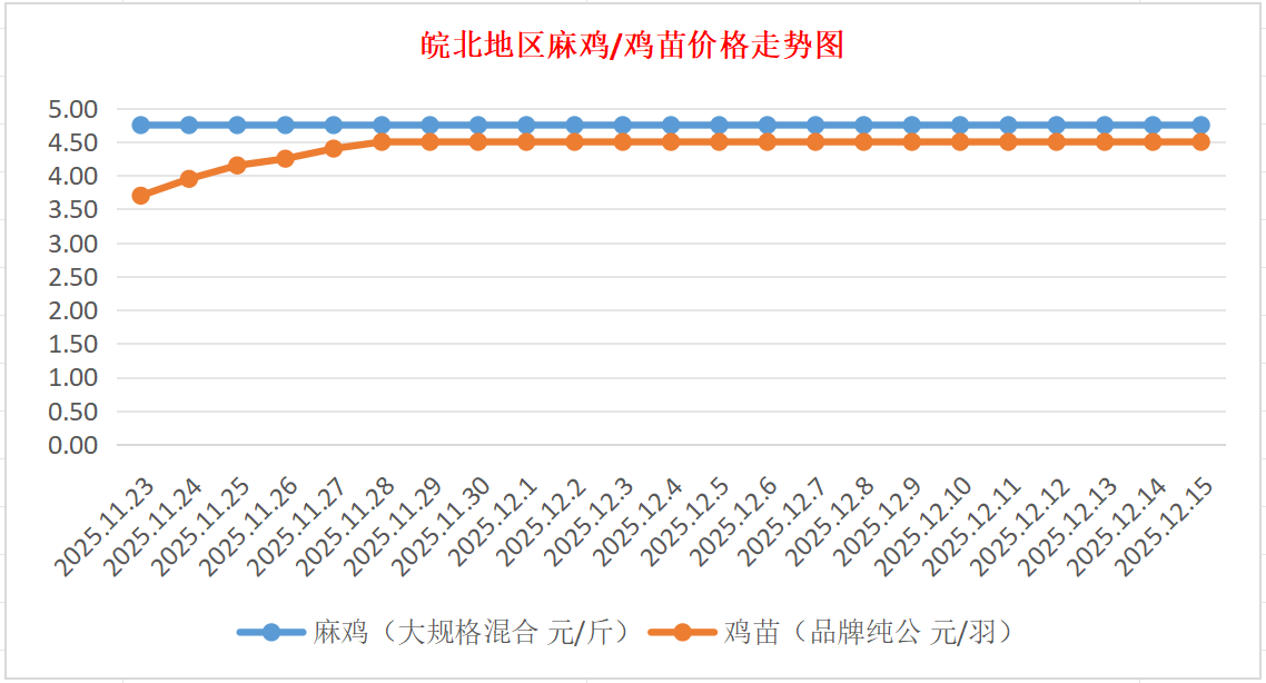 鸡病专业网独家信息:2025年12月15日皖北地区817-麻鸡行情最新走势