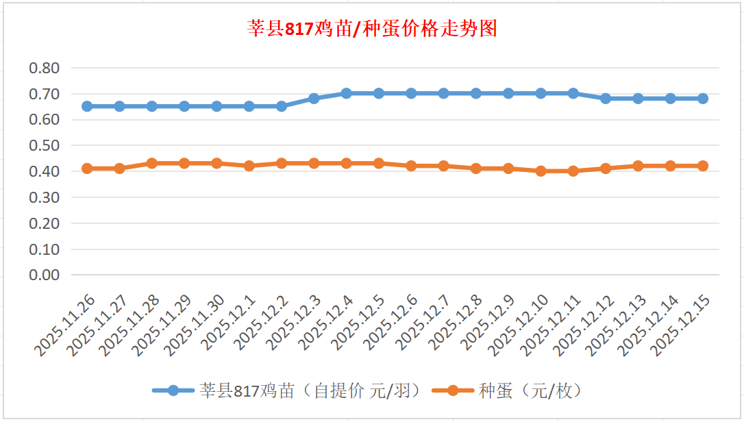 817鸡苗(混合):报价自提0.68元/羽。(稳)