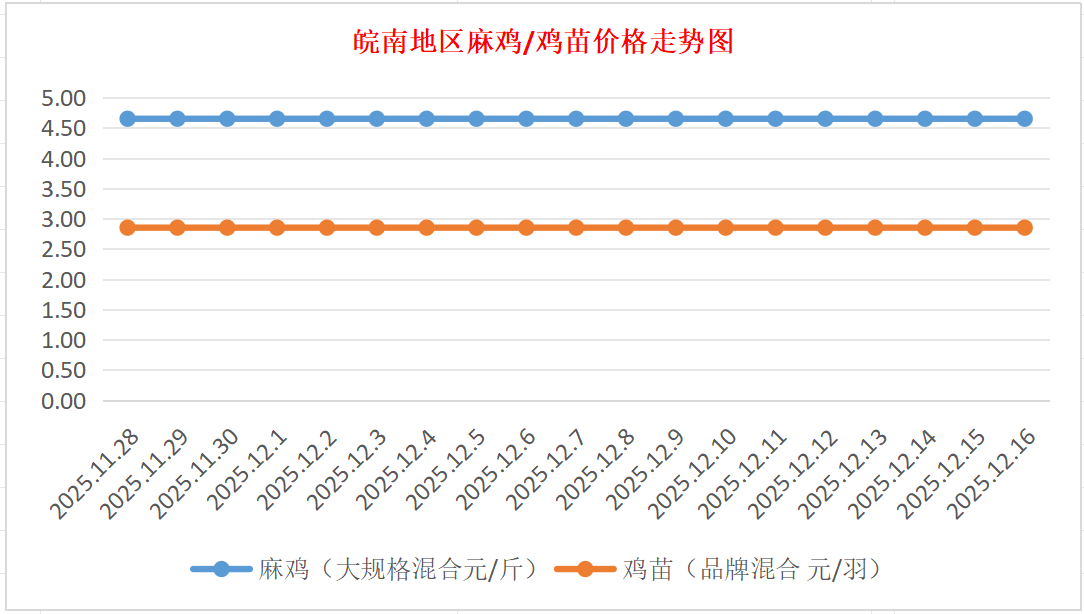 鸡病专业网独家信息:2025年12月16日皖南地区817-麻鸡行情最新走势