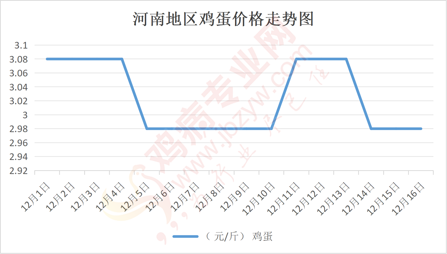 鸡病专业网消息:12月16日,河南郑州鸡蛋3元/斤,稳;新密鸡蛋3元/斤,稳;荥阳鸡蛋3元/斤,稳;中牟鸡蛋3元/斤,稳;周口鸡蛋2.95元/斤,稳;商丘鸡蛋90元/30斤,稳;鹤壁鸡蛋2.95元/斤,稳;汝州鸡蛋2.95元/斤,稳;开封鸡蛋90元/30斤,稳;漯河鸡蛋2.95元/斤,稳;漯河临颍鸡蛋2.95元/斤,稳;许昌鸡蛋3元/斤,稳;南阳鸡蛋2.95元/斤,稳;南阳邓州鸡蛋2.95元/斤,稳;新乡鸡蛋2.95元/斤,稳;安阳鸡蛋2.95元/斤,稳;新郑鸡蛋3元/斤,稳;登封鸡蛋3元/斤,稳;平顶山鸡蛋3元/斤,稳;驻马店鸡蛋3元/斤,稳;三门峡鸡蛋3元/斤,稳;焦作鸡蛋2.95元/斤,稳;信阳鸡蛋2.95元/斤,稳;濮阳鸡蛋2.95元/斤,稳。