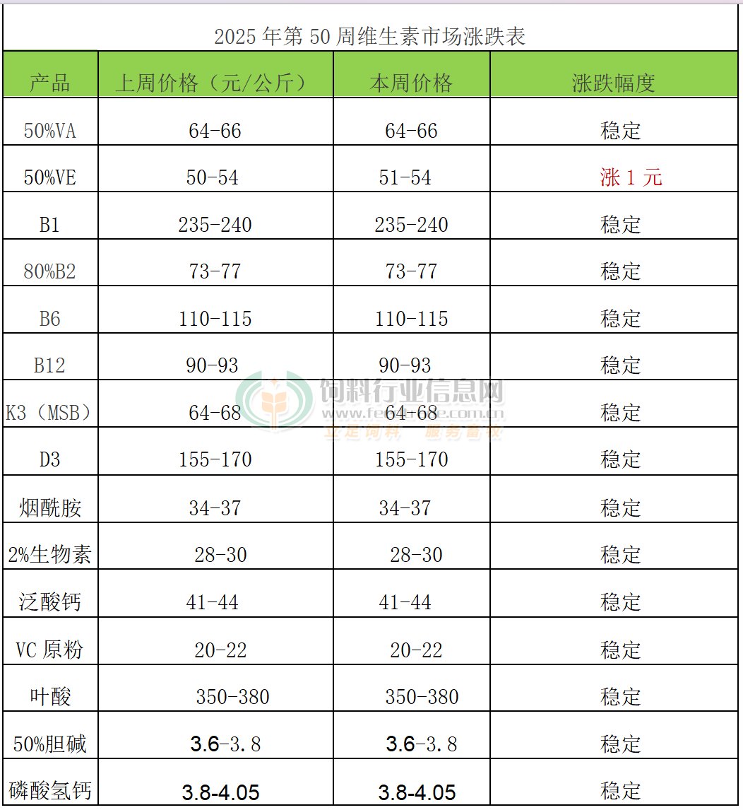 2025年第50周维生素市场动态