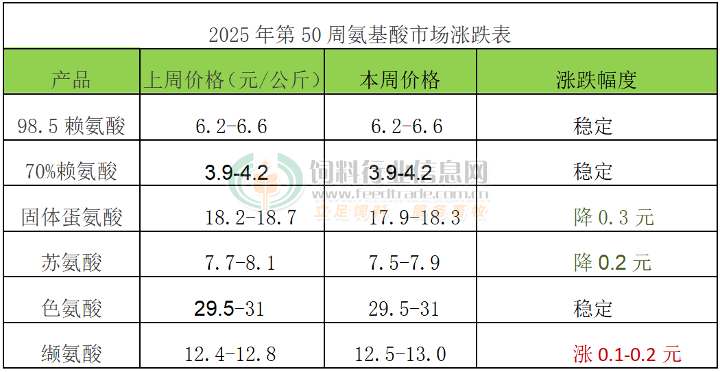 色氨酸市场动态,依据不同品牌不同货量,市场报价29.5-31元/公斤,2025年1-10月国内进口色氨酸23905吨,同比增加23.5%。11月17日象屿生化色氨酸报价降至33元/公斤,豆粕低位震荡,畜禽养殖处于亏损区,需求面疲软,下游即采即用为主,市场稳中偏弱整理。