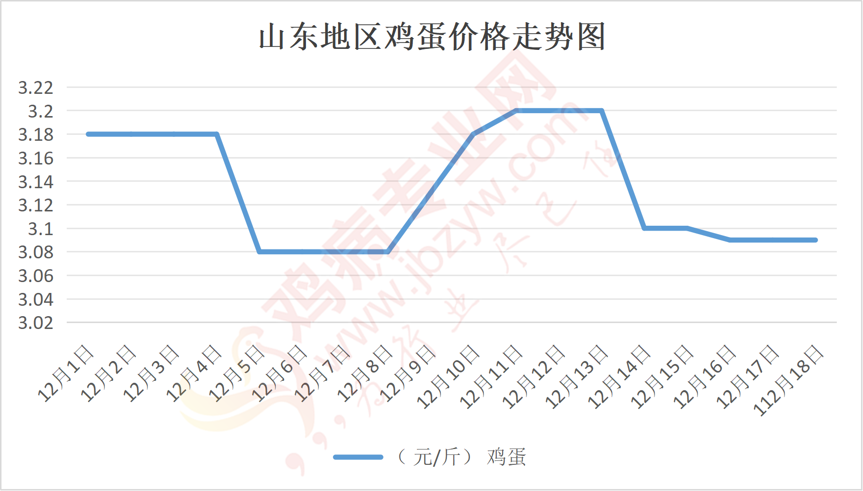 鸡病专业网消息:12月18日,山东地区莱阳鸡蛋3.15元/斤,稳;青岛鸡蛋3.15元/斤,稳;诸城鸡蛋3.15元/斤,稳;安丘鸡蛋3.05元/斤,稳;昌乐鸡蛋3.05元/斤,稳;寿光鸡蛋3.05元/斤,稳;昌邑鸡蛋3.05元/斤,稳;高密鸡蛋3.15元/斤,稳;青州鸡蛋3.05元/斤,稳;临朐鸡蛋3.05元/斤,稳;莱州鸡蛋3.15元/斤,稳;威海鸡蛋3.15元/斤,稳;临沭鸡蛋3.1元/斤,稳;沂水鸡蛋3.1元/斤,稳;沂南鸡蛋3.1元/斤,稳;莒南鸡蛋3.1元/斤,稳;兰陵县鸡蛋3.1元/斤,稳;日照鸡蛋3.1元/斤,稳;莒县鸡蛋3.1元/斤,稳;日照辛萁商贸鸡蛋3.1元/斤,稳;泗水鸡蛋价格90元/斤,稳;济宁、汶上鸡蛋价格90元/斤,稳;梁山、东平红蛋价格90元/斤,稳;枣庄滕州地区鸡蛋混码主流到户90元/30斤,落;泰安地区新泰鸡蛋价格90元/斤,稳;菏泽地区曹县主流到户90元/斤,稳;成武鸡蛋价格90元/斤,稳;单县到户90元/斤,稳;聊城莘县90元/斤,稳。
