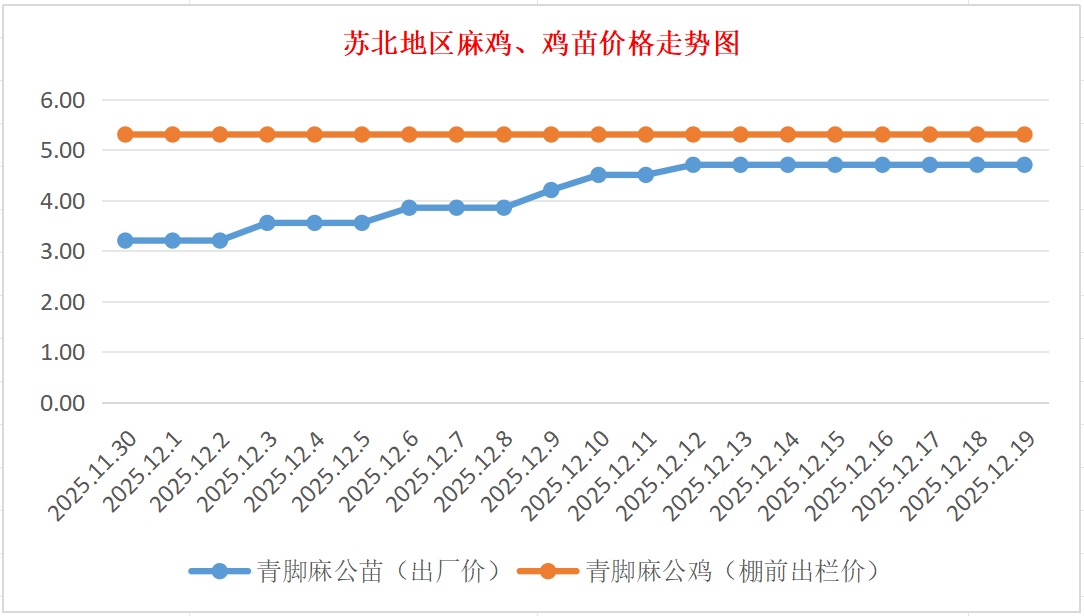 苏北地区麻鸡、鸡苗价格走势图(图源:鸡病专业网)