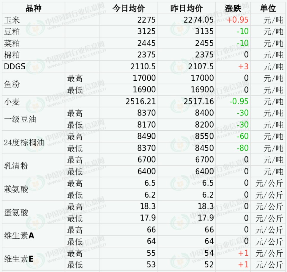 2025年12月18日国内饲料原料行情汇总