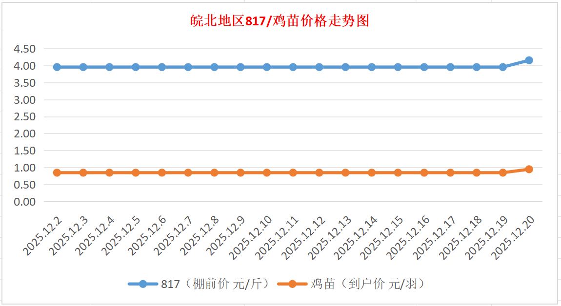 鸡病专业网独家信息:2025年12月20日皖北地区817-麻鸡行情最新走势