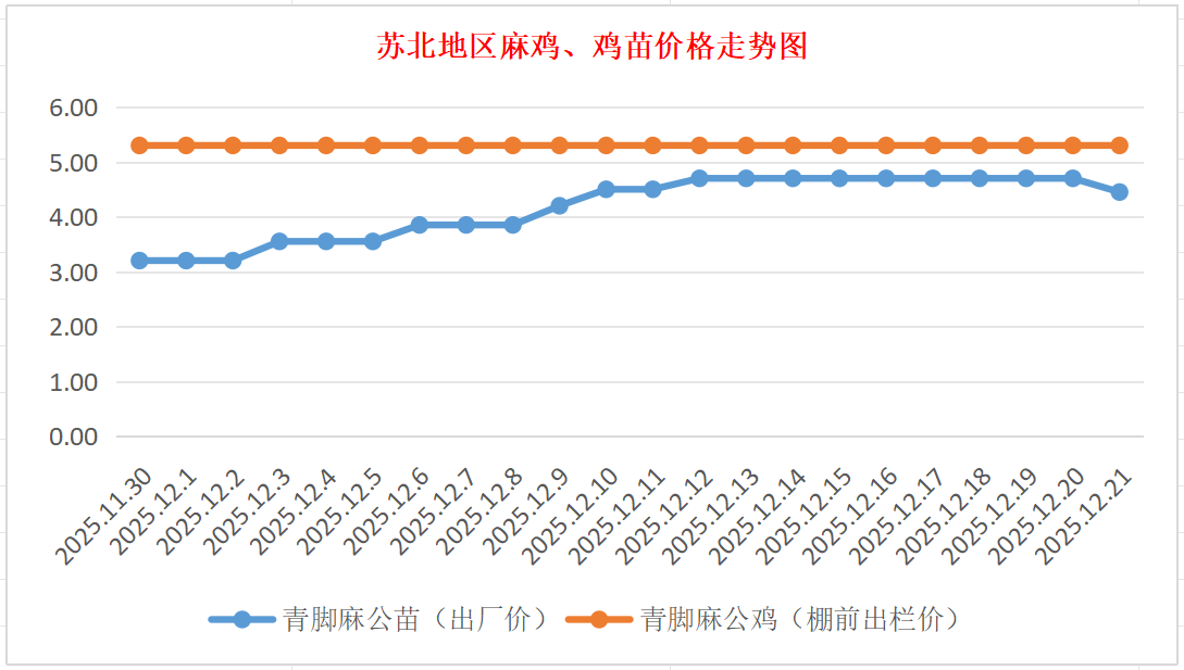 苏北地区麻鸡、鸡苗价格走势图(图源:鸡病专业网)