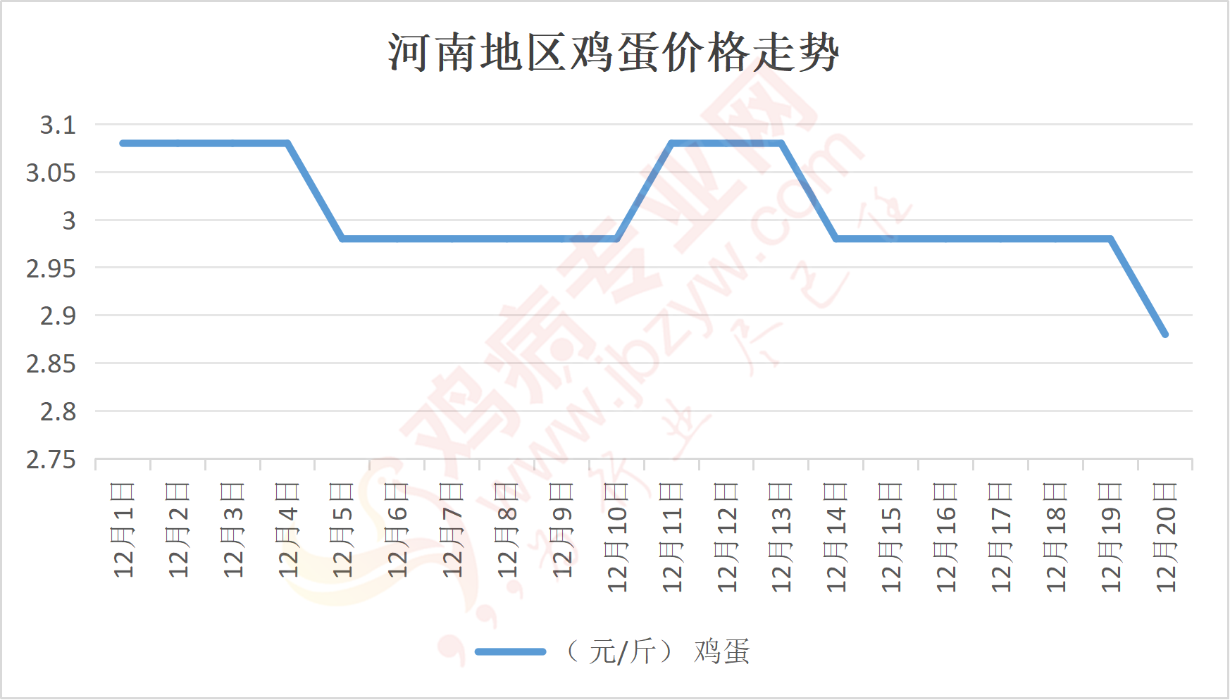 鸡病专业网消息:12月20日,河南郑州鸡蛋2.9元/斤,落;新密鸡蛋2.9元/斤,落;荥阳鸡蛋2.9元/斤,落;中牟鸡蛋2.9元/斤,落;周口鸡蛋2.85元/斤,落;商丘鸡蛋87元/30斤,落;鹤壁鸡蛋2.85元/斤,落;汝州鸡蛋2.85元/斤,落;开封鸡蛋87元/30斤,落;漯河鸡蛋2.85元/斤,落;漯河临颍鸡蛋2.85元/斤,落;许昌鸡蛋2.9元/斤,落;南阳鸡蛋2.85元/斤,落;南阳邓州鸡蛋2.85元/斤,落;新乡鸡蛋2.85元/斤,落;安阳鸡蛋2.85元/斤,落;新郑鸡蛋2.9元/斤,落;登封鸡蛋2.9元/斤,落;平顶山鸡蛋2.9元/斤,落;驻马店鸡蛋2.9元/斤,落;三门峡鸡蛋2.9元/斤,落;焦作鸡蛋2.85元/斤,落;信阳鸡蛋2.85元/斤,落;濮阳鸡蛋2.85元/斤,落。