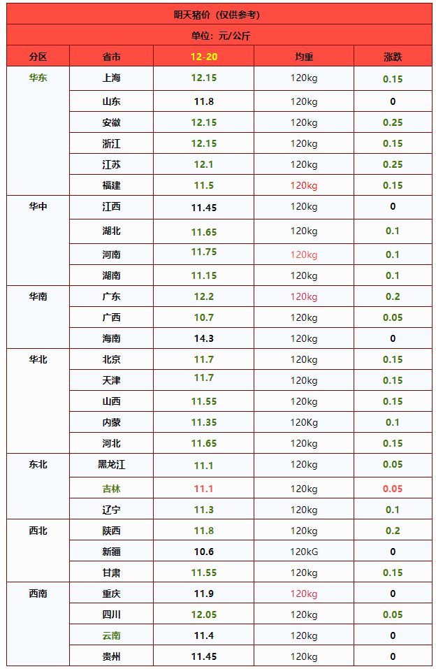 虽然,受猪价重心下移,二育抄底现象增多,养殖端也陆续出现一定压栏增重的操作,国内猪价逆势上涨!可惜,由于冬至前需求增量不佳,且,养殖端受生猪疫病风险加大,出栏积极性提升,猪价承压转弱,价格重心震荡下行!