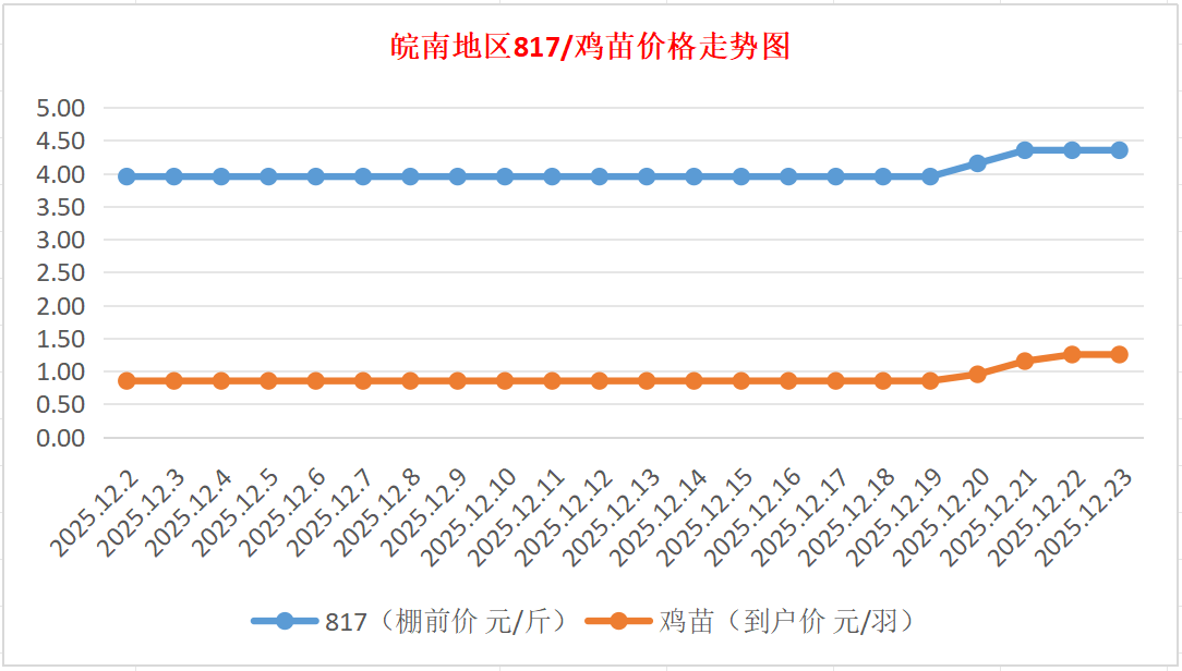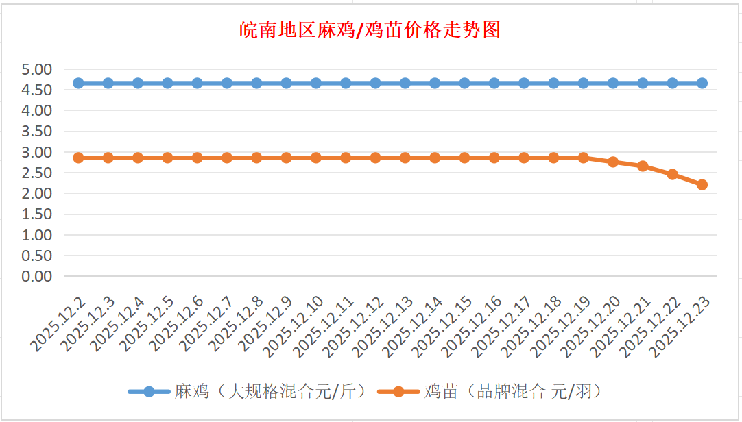 鸡病专业网独家信息:2025年12月23日皖南地区817-麻鸡行情最新走势
