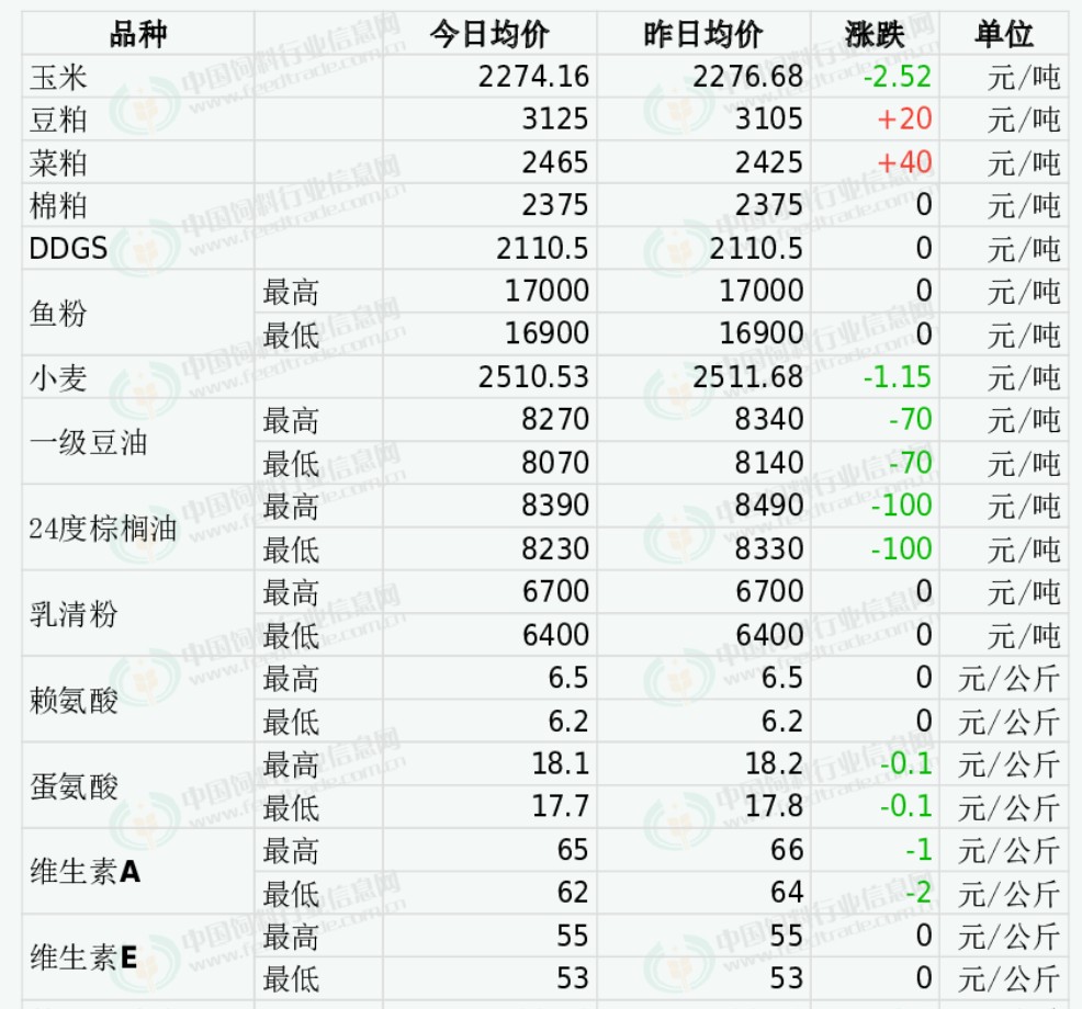 2025年12月22日国内饲料原料行情汇总