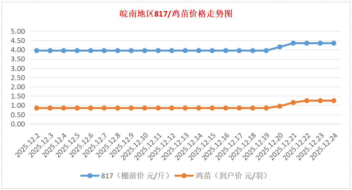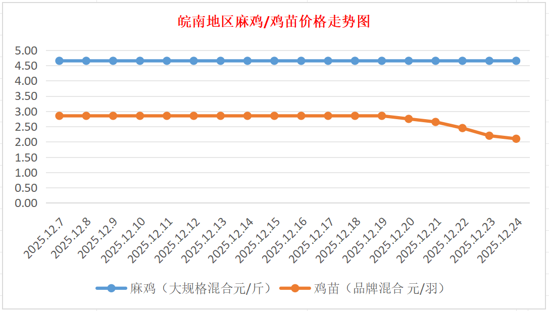 鸡病专业网独家信息:2025年12月24日皖南地区817-麻鸡行情最新走势