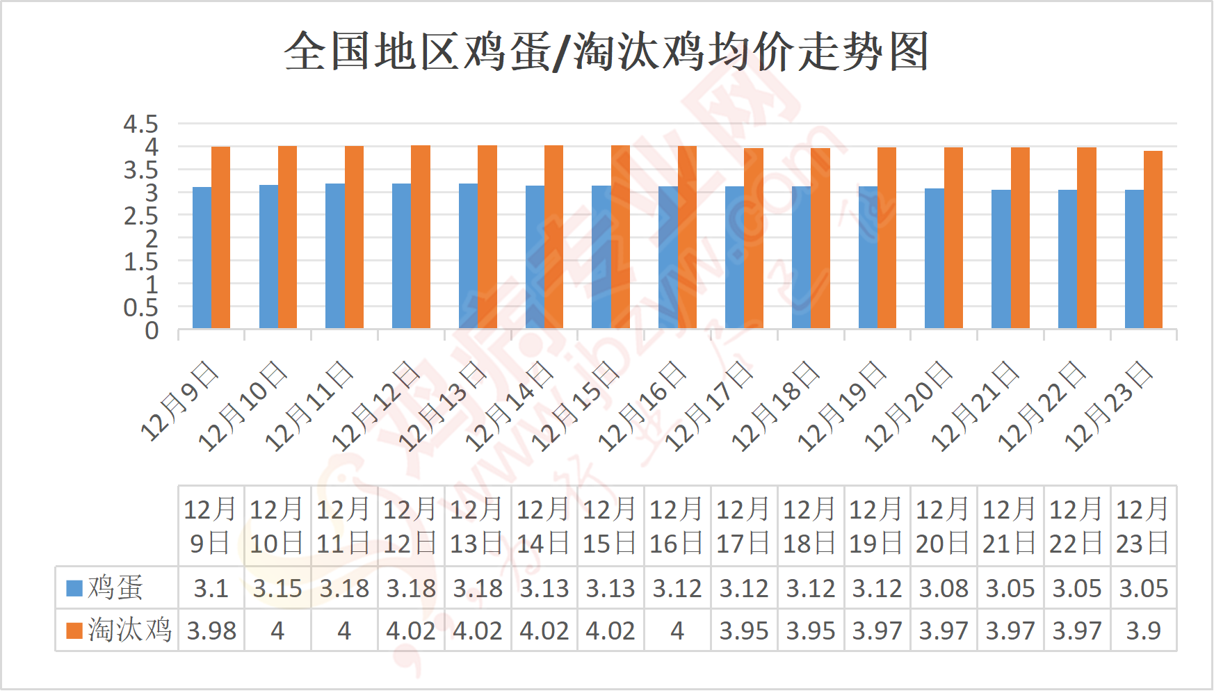 12月23日我国部分地区鸡蛋、淘汰鸡价格汇总